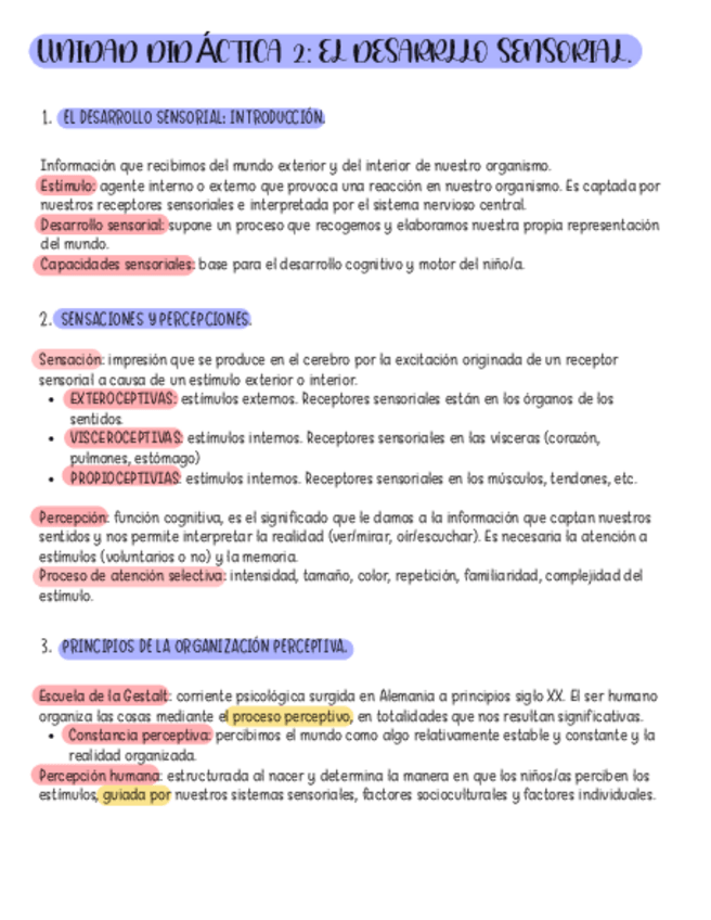 Tema 2 Desarrollo cognitivo Sistemas sensoriales, Teoría Gestalt, Teoría ambientalista, actividades sensoriales en el aula,