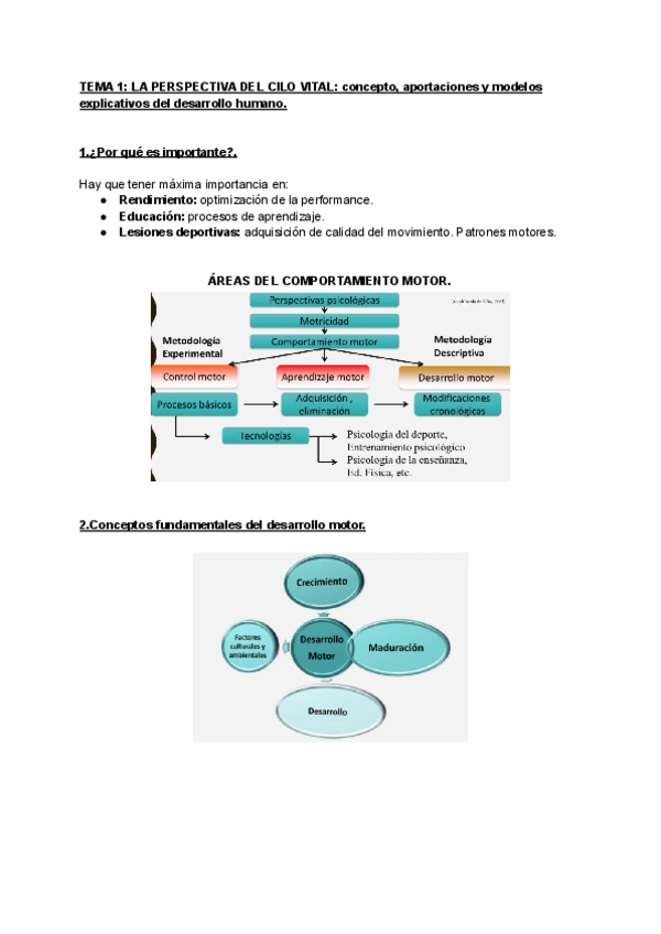 Apuntes del tema 1 de Desarrollo, Control y Aprendizaje Motor, El desarrollo motor humano: Concepto, aportaciones y modelos explicativos.