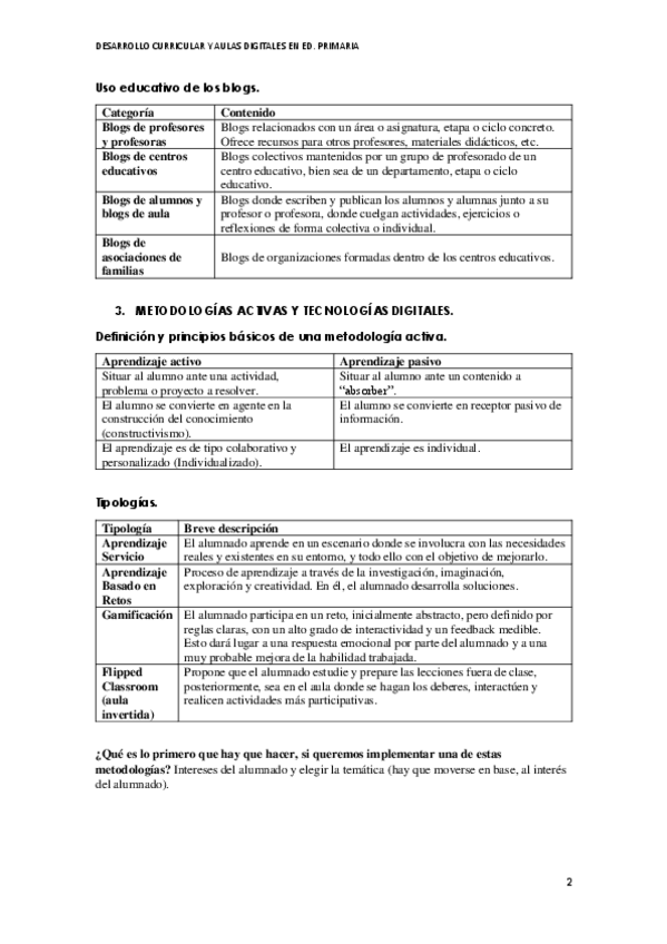 He publicado nuevos apuntes de 2º DESARROLLO CURRICULAR Y AULAS DIGITALES EN EDUCACIÓN PRIMARIA: apuntes-bloque-2-Metodologias-activas-y-TIC.pdf
