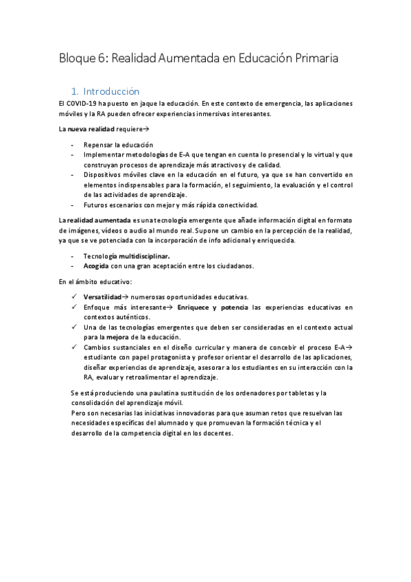 He publicado nuevos apuntes de 2º DESARROLLO CURRICULAR Y AULAS DIGITALES EN EDUCACIÓN PRIMARIA: resumen-bloque-6-Realidad-Aumentada.pdf