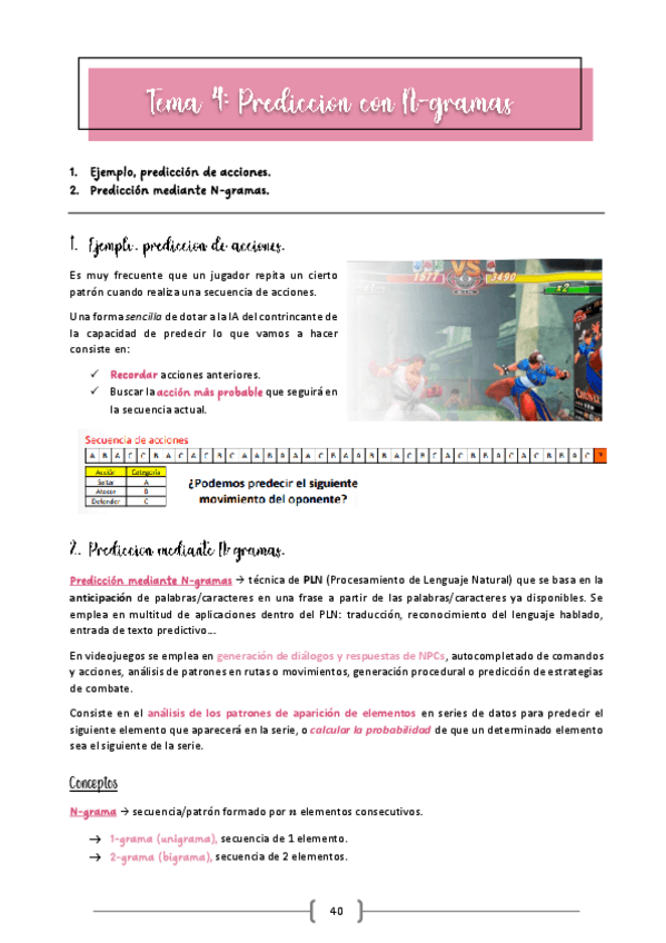 He publicado nuevos apuntes de 3º Desarrollo de juegos con inteligencia artificial: Apuntes - Bloque 2 - Tema 4. Predicción con N-gramas.pdf