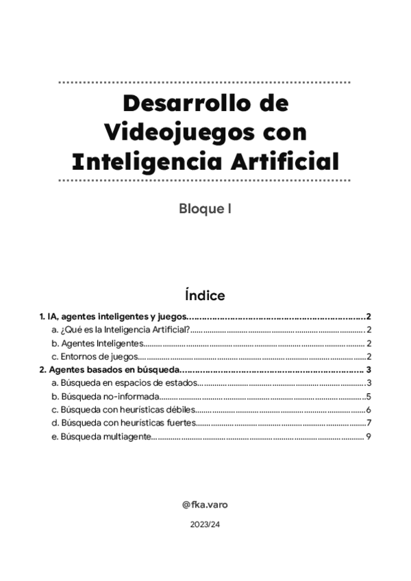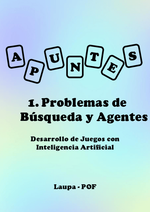 He publicado nuevos apuntes de 3º Desarrollo de juegos con inteligencia artificial: Apuntes- Bloque 1 - Tema 1. Problemas de búsqueda y agentes.pdf