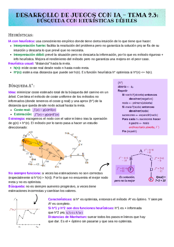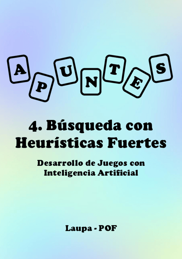 He publicado nuevos apuntes de 3º Desarrollo de juegos con inteligencia artificial: Apuntes - Bloque 1 - Tema 3. Búsqueda con heurísticas débiles.pdf