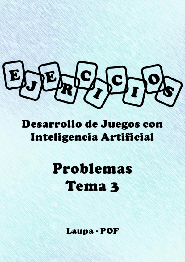 He publicado nuevos ejercicios de 3º Desarrollo de juegos con inteligencia artificial: Ejercicios - Bloque 1 - Tema 3. Búsqueda con heurísticas débiles.pdf