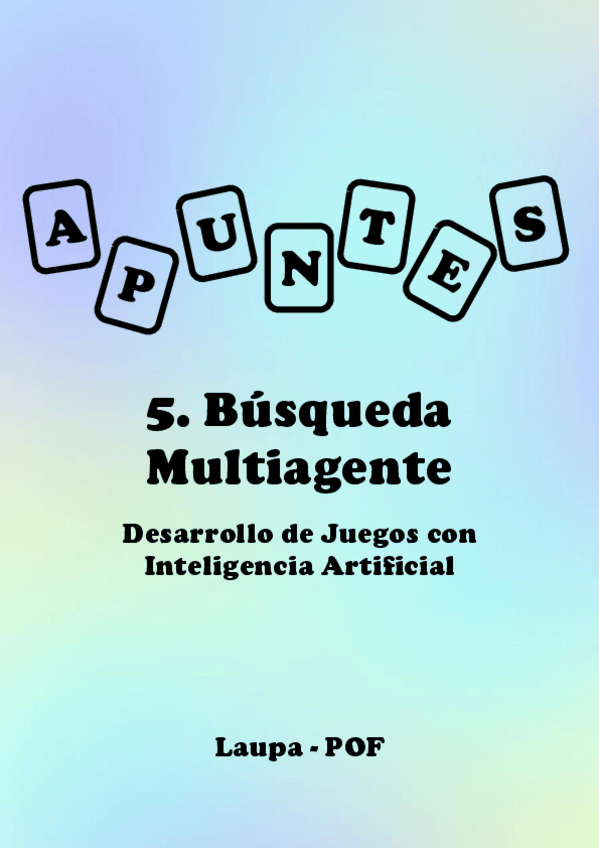 He publicado nuevos apuntes de 3º Desarrollo de juegos con inteligencia artificial: Apuntes - Bloque 1 - Tema 5. Búsqueda Multiagente y suma cero.pdf