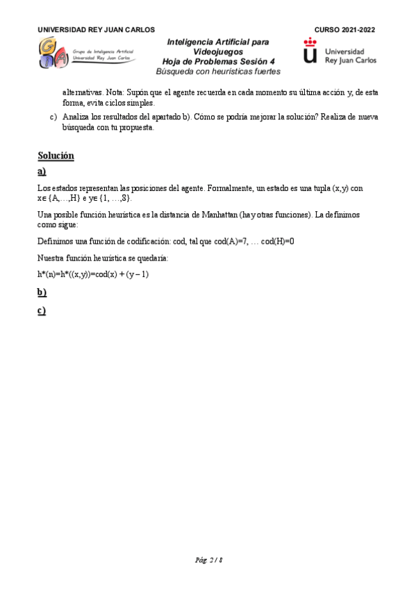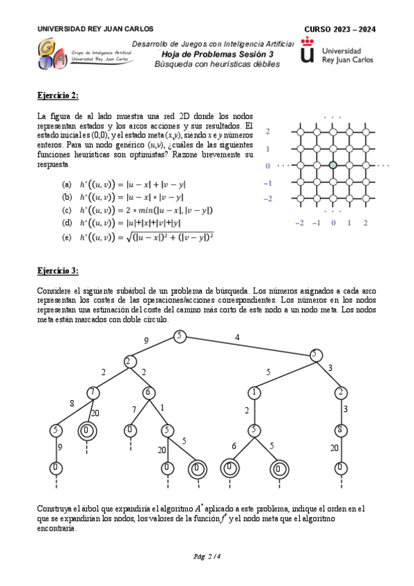 He publicado nuevos ejercicios de 3º Desarrollo de juegos con inteligencia artificial: Ejercicios - Bloque 1 - Tema 4. Búsqueda con heurísticas fuertes.pdf