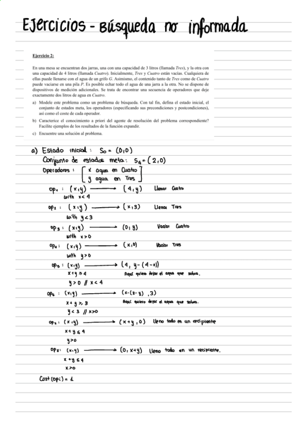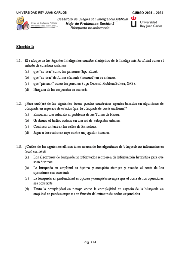 He publicado nuevos ejercicios de 3º Desarrollo de juegos con inteligencia artificial: Ejercicios - Bloque 1 - Tema 2. Búsqueda no informada.pdf