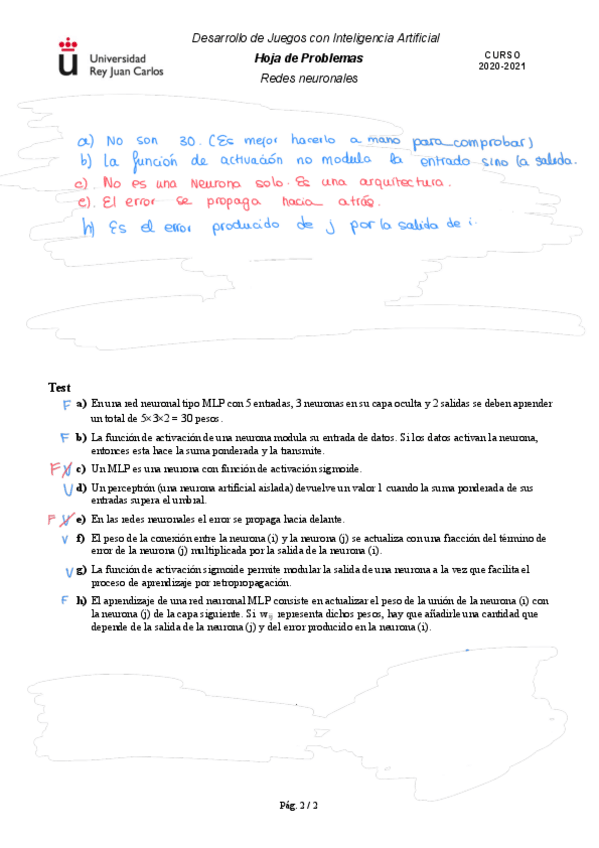 He publicado nuevos ejercicios de 3º Desarrollo de juegos con inteligencia artificial: Ejercicios - Bloque 2 - Tema 2. Redes neuronales.pdf