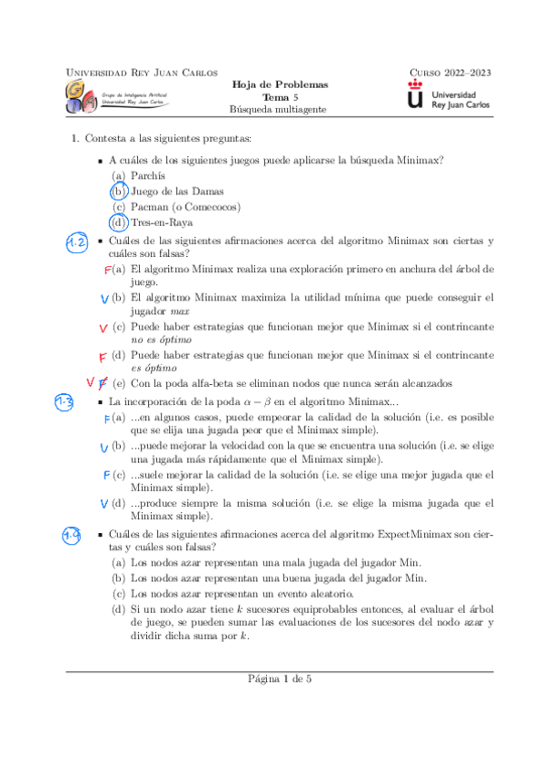 He publicado nuevos ejercicios de 3º Desarrollo de juegos con inteligencia artificial: Ejercicios - Bloque 1 - Tema 5. Búsqueda multiagente y suma cero.pdf