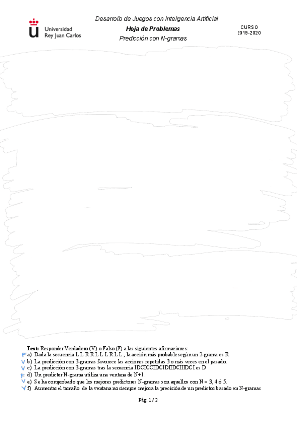 He publicado nuevos ejercicios de 3º Desarrollo de juegos con inteligencia artificial: Ejercicios - Bloque 2 - Tema 4. N-gramas.pdf