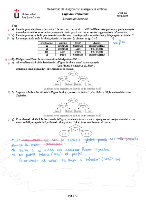 He publicado nuevos ejercicios de 3º Desarrollo de juegos con inteligencia artificial: Ejercicios - Bloque 2 - Tema 3. Árboles de decisión.pdf