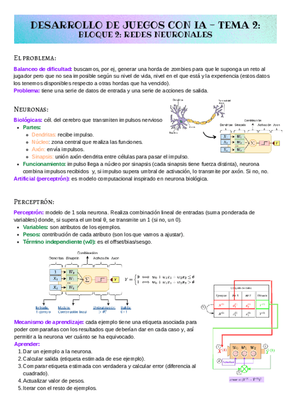 He publicado nuevos apuntes de 3º Desarrollo de juegos con inteligencia artificial: Apuntes - Bloque 2 - Tema 2. Redes neuronales.pdf