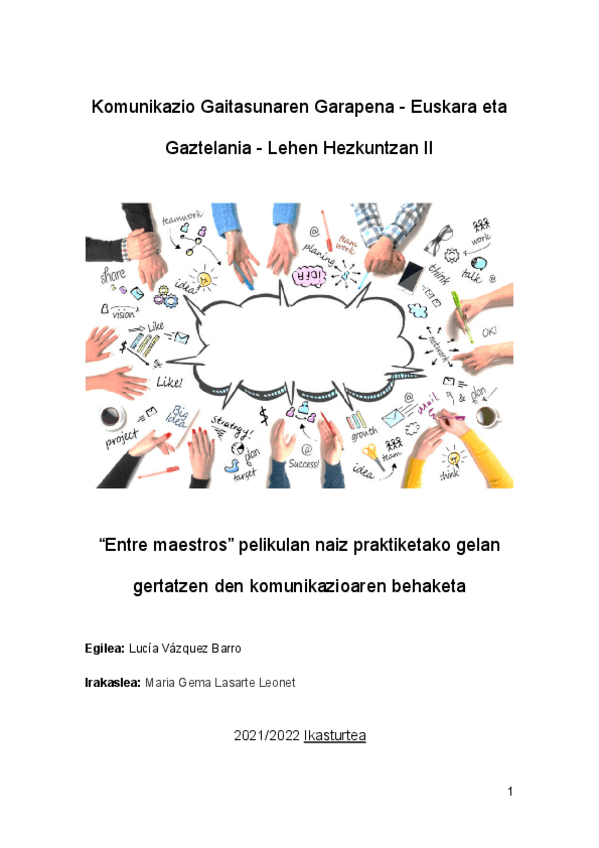 He publicado nuevos apuntes de 2º Desarrollo de la competencia comunicativa - lengua castellana y lengua vasca - en educación primaria II: Entre-maestros-pelikulan-naiz-praktiketako-gelan-gertatzen-den-komunikazioaren-behaketa-Lucia-Vazquez-Barro.pdf