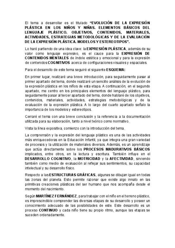 TEMARIO DESARROLLO DE LA EXPRESIÓN PLÁSTICA