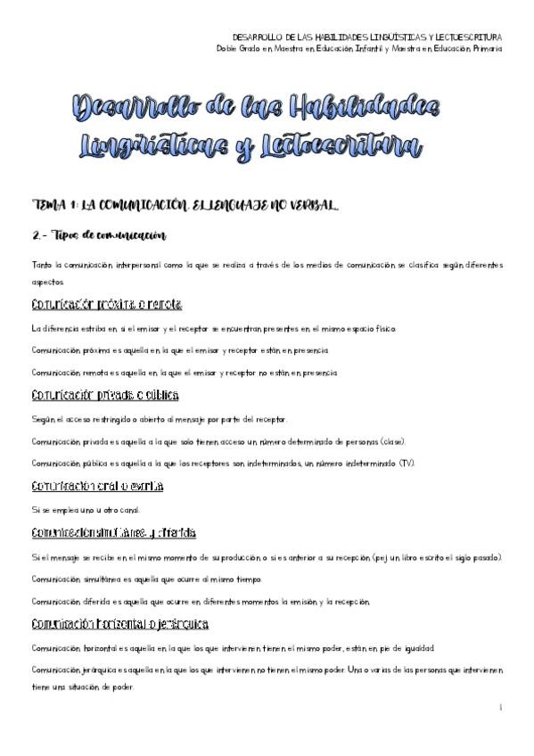 He publicado nuevos apuntes de 1º Desarrollo de las habilidades lingüísticas y lectoescritura: TEMA 1.pdf