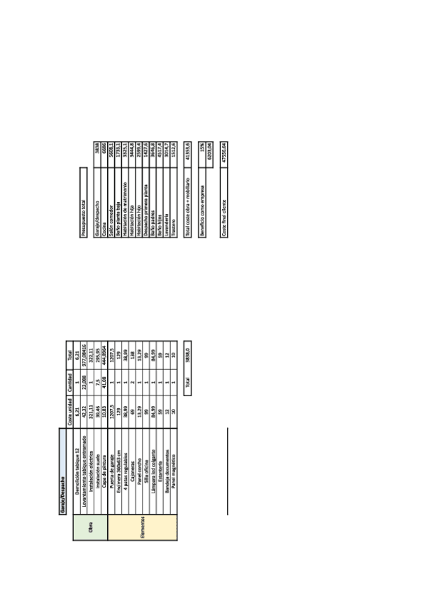 Reforma, presupuesto, planos, render, memoria, estudio de mercado. Trabajo en grupo, nota 9
