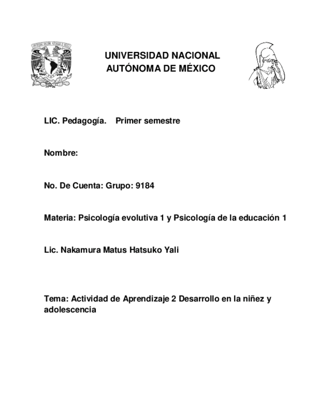 He publicado nuevos trabajos de 1º Desarrollo en la niñez y adolescencia: Desarrollo en la niñez y adolescenci