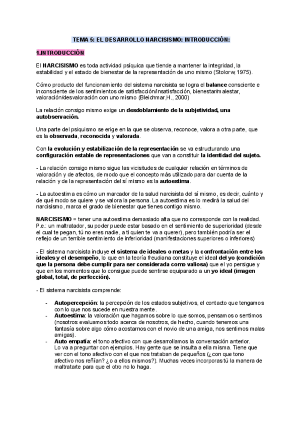 He publicado nuevos apuntes de 2º Desarrollo Social y de la Personalidad: TEMA-5-Narcisismo.pdf
