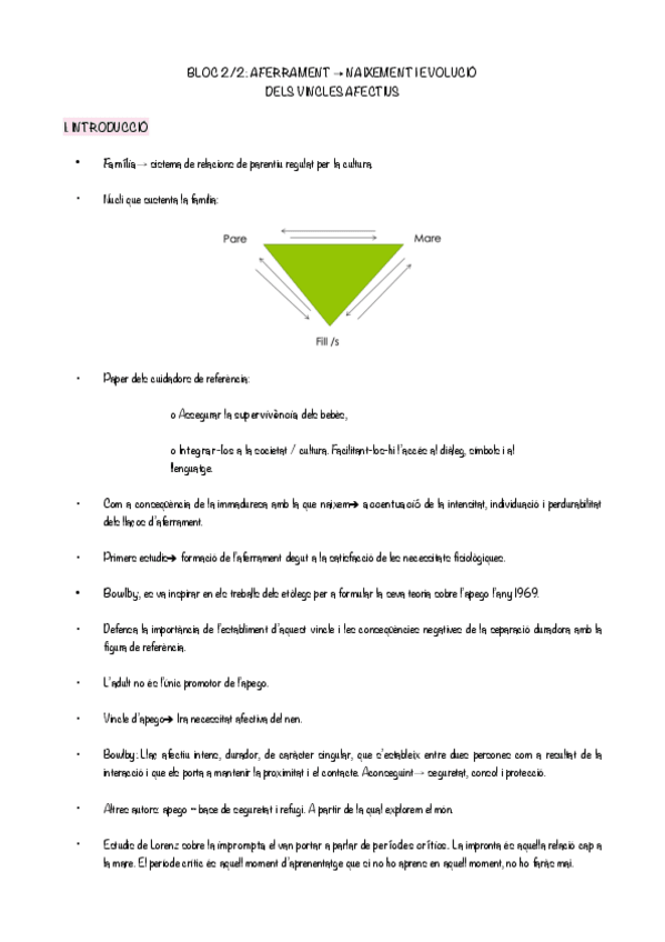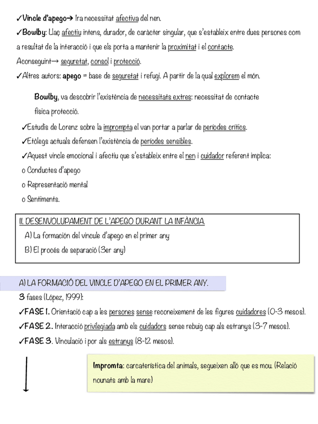 Apunts del bloc 2.2, AFERRAMENT → NAIXEMENT I EVOLUCIÓ DELS VINCLES AFECTIUS