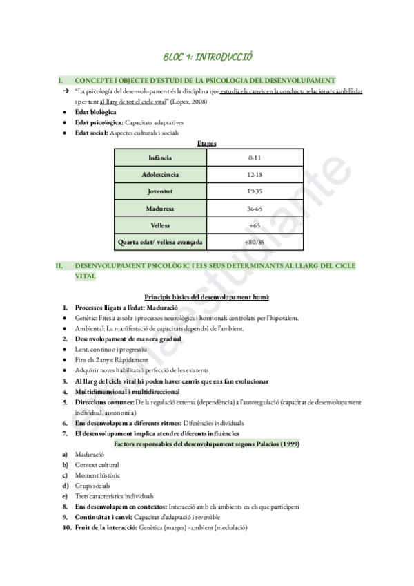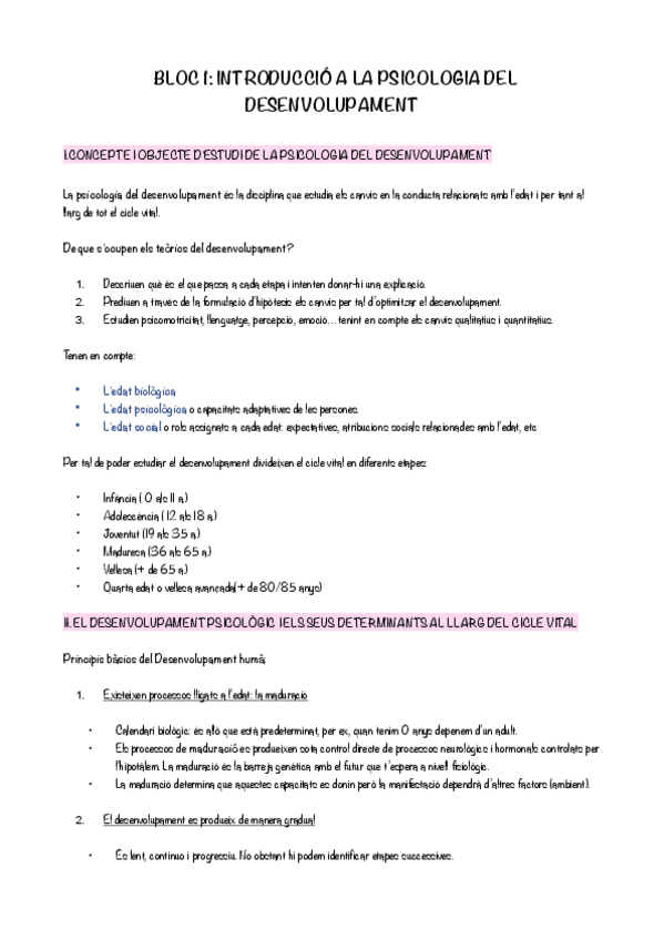 Apunts del primer bloc, INTRODUCCIÓ A LA PSICOLOGIA DEL DESENVOLUPAMENT
