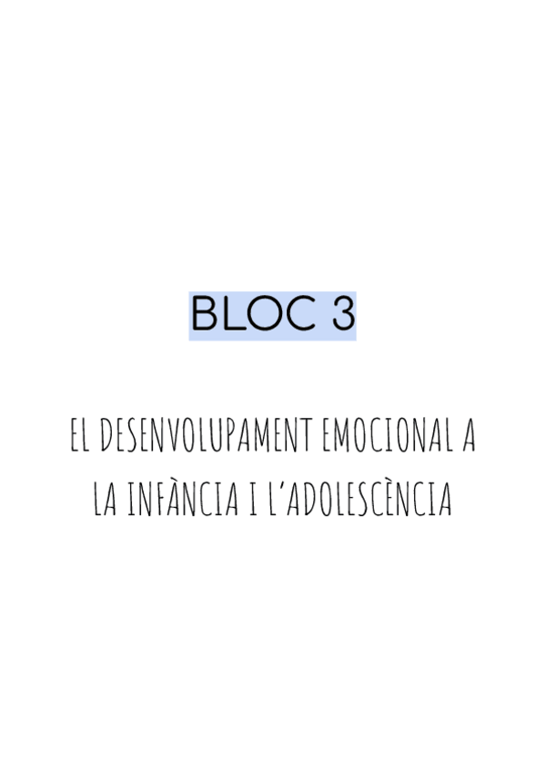 Apunts del bloc 3, EL DESENVOLUPAMENT EMOCIONAL A LA INFÀNCIA I L’ADOLESCÈNCIA