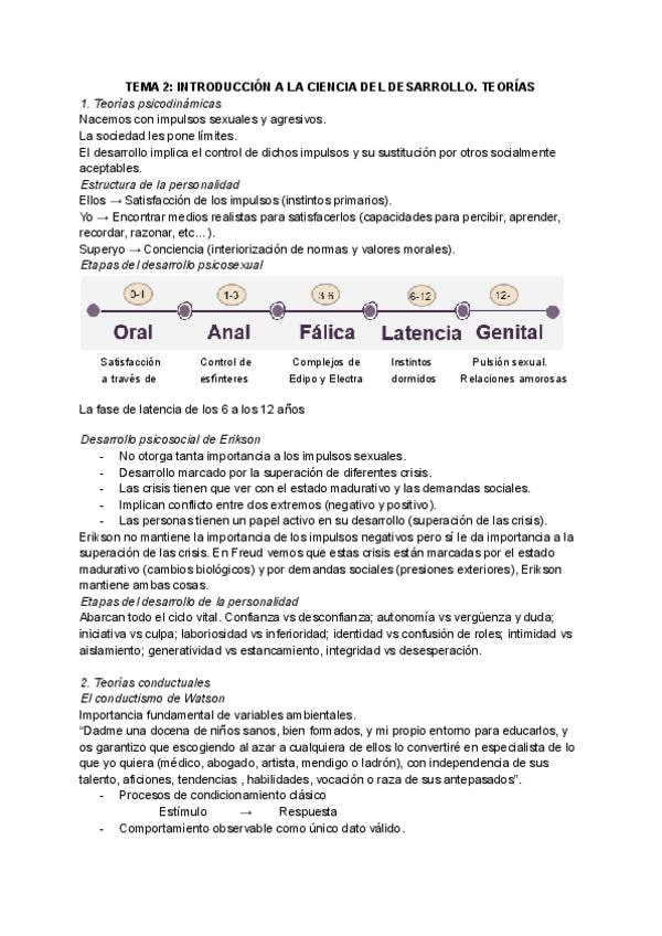 Tema 2 "Introducción a la ciencia del desarrollo". Teorías