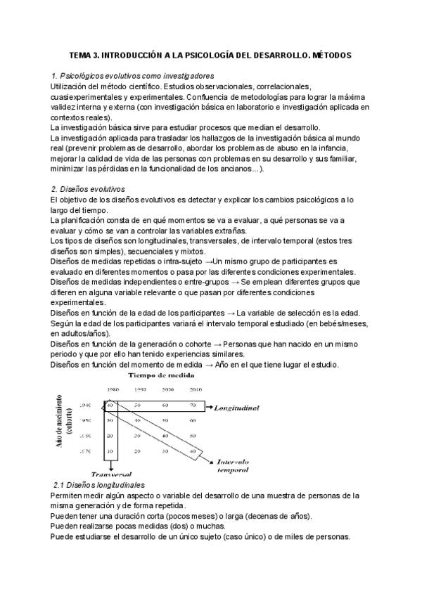 Tema 3 "Introducción a la psicología del desarrollo". Métodos