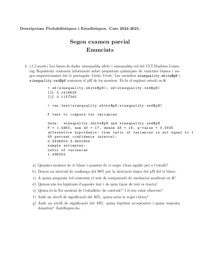 He publicado nuevos examenes de 2º Descripcions Probabilístiques i Estadístiques: 2on-PARCIAL-202324.pdf