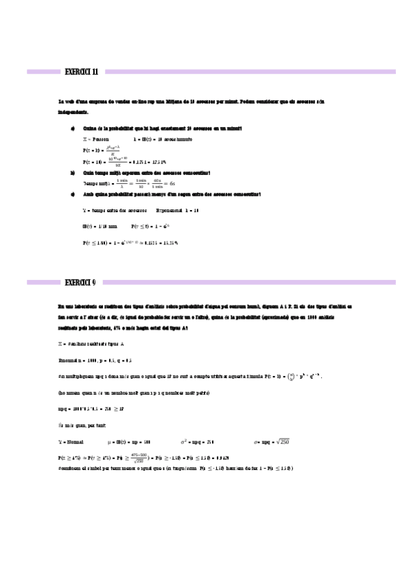 He publicado nuevos ejercicios de 2º Descripcions Probabilístiques i Estadístiques: Llista 5 - Problemes - Solució