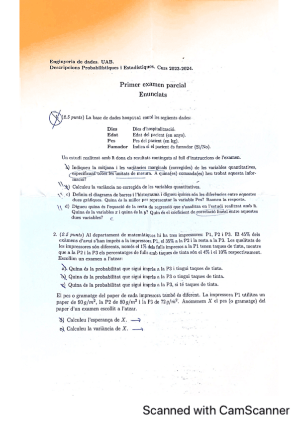 1r Examen parcial de Descripcions Probabilístiques i estadistiques 2025-26 (nov25)