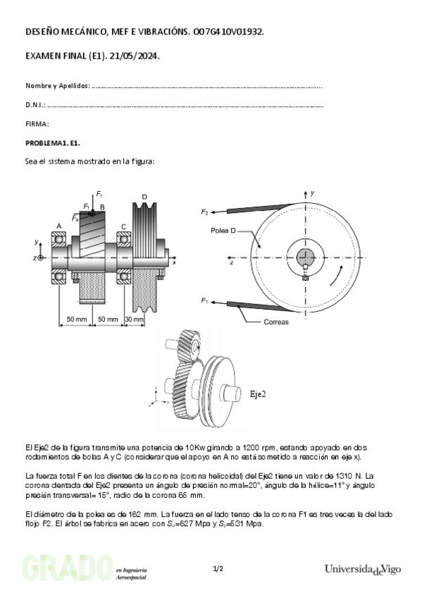 He publicado nuevos ejercicios de 3º Deseño mecánico, MEF e vibracións: Ejercicios-TEMA-1.pdf