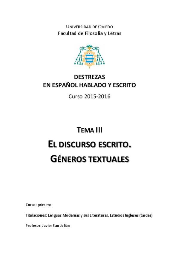 He publicado nuevos apuntes de 1º Destrezas en Español Hablado y Escrito: tema-3-discurso-escrito.pdf