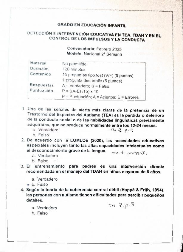 He publicado nuevos examenes de 4º Detección e Intervención Educativa en Tea, Tdah y en el Control de los Impulsos y la Conducta: autoevaluaciones.pdf