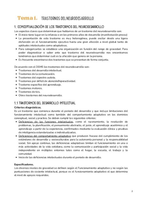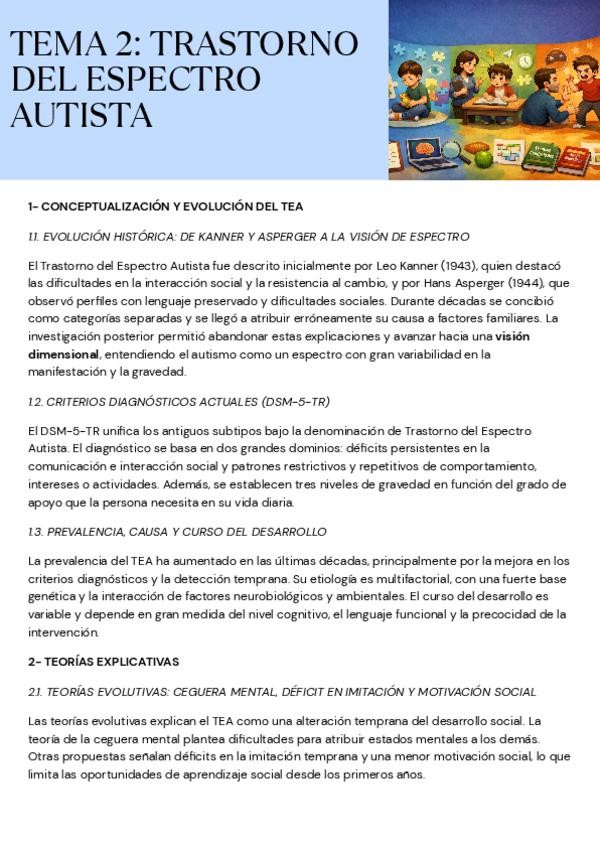 Resumen TEMA 2 - Detección e Intervención Educativa en TEA, TDAH y en el Control de los Impulsos y la Conducta (UNED) - SOLO PARTE 1
