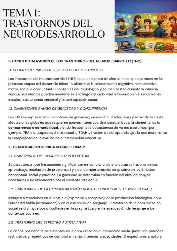 Resumen TEMA 1 - Detección e Intervención Educativa en TEA, TDAH y en el Control de los Impulsos y la Conducta (UNED) - PARTE 1 Y 2 + SÍNTESIS