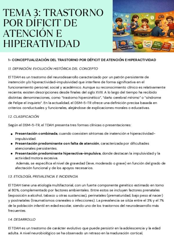 Resumen TEMA 3 - Detección e Intervención Educativa en TEA, TDAH y en el Control de los Impulsos y la Conducta (UNED) - PARTE 1 Y 2
