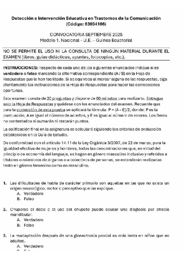 He publicado nuevos apuntes de 4º Detección e Intervención Educativa en Trastornos de la Comunicación: Exámenes Trastornos de la comunicación curso 2024-2025