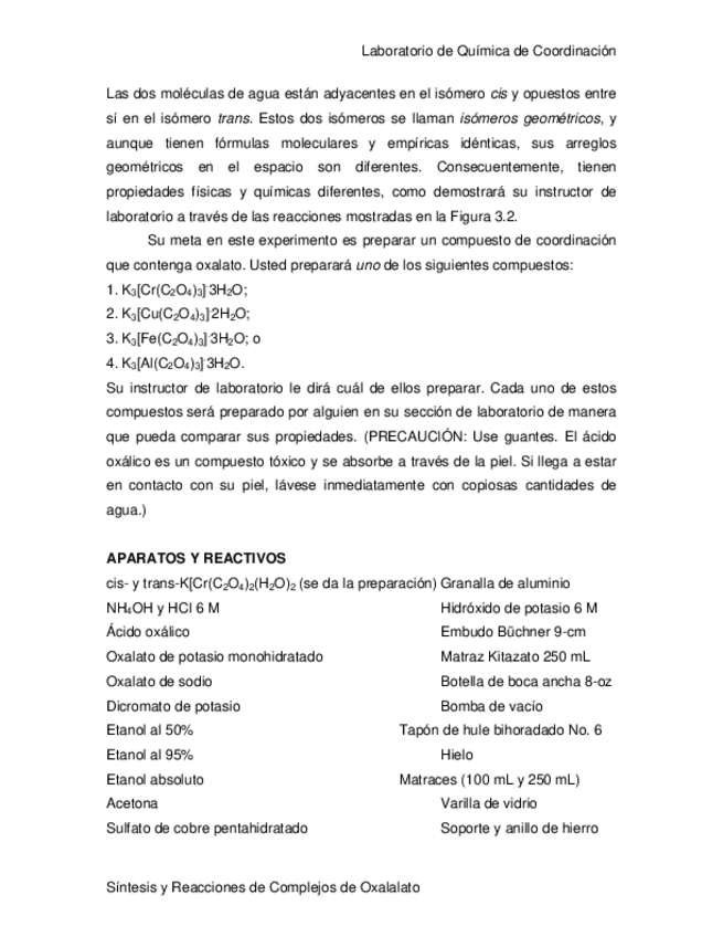 He publicado nuevos apuntes de 3º Determinación de Estructuras de Compuestos Orgánicos: 1SintesisdeComplejosdeOxalato.pdf