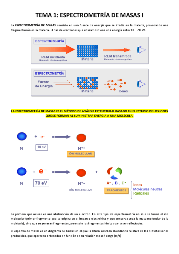 He publicado nuevos apuntes de 3º Determinación de Estructuras de Compuestos Orgánicos: Resumenes Bloque II - Espectrometria de Masas