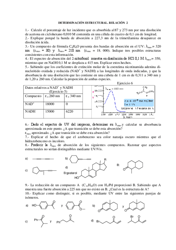 He publicado nuevos apuntes de 4º Determinación Estructural de los Compuestos Orgánicos: Ejercicios-UV-completos-1-3.pdf