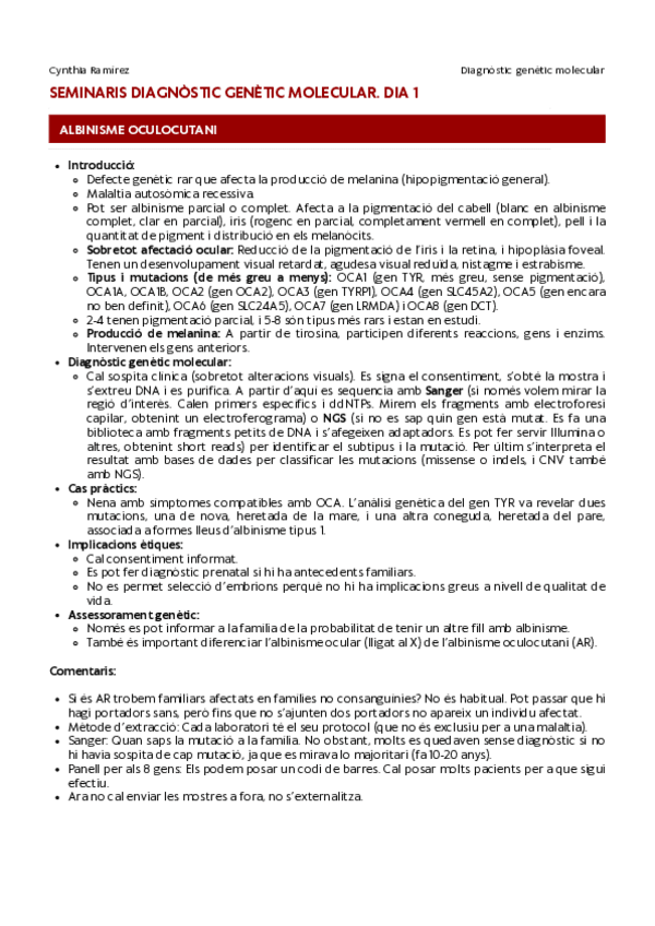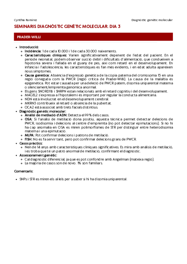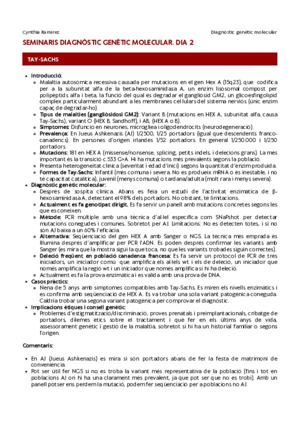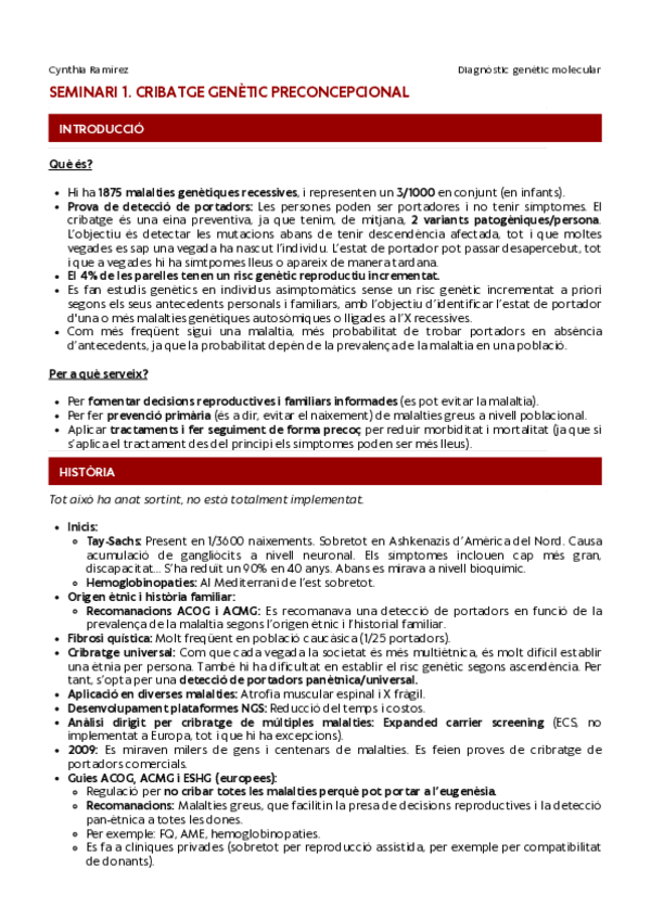 Apunts - Seminaris Diagnòstic Genètic Molecular (CAT)