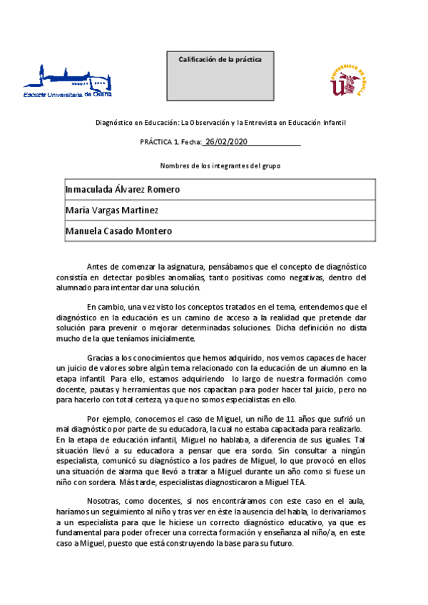 He publicado nuevos practicas de 1º Diagnóstico en Educación: La Observación y La Entrevista en Educación Infantil: PRACTICA-1.pdf