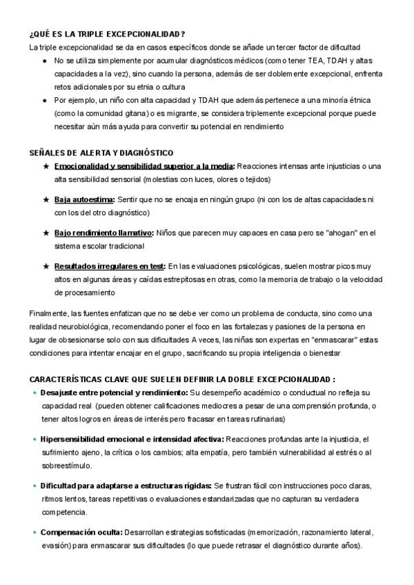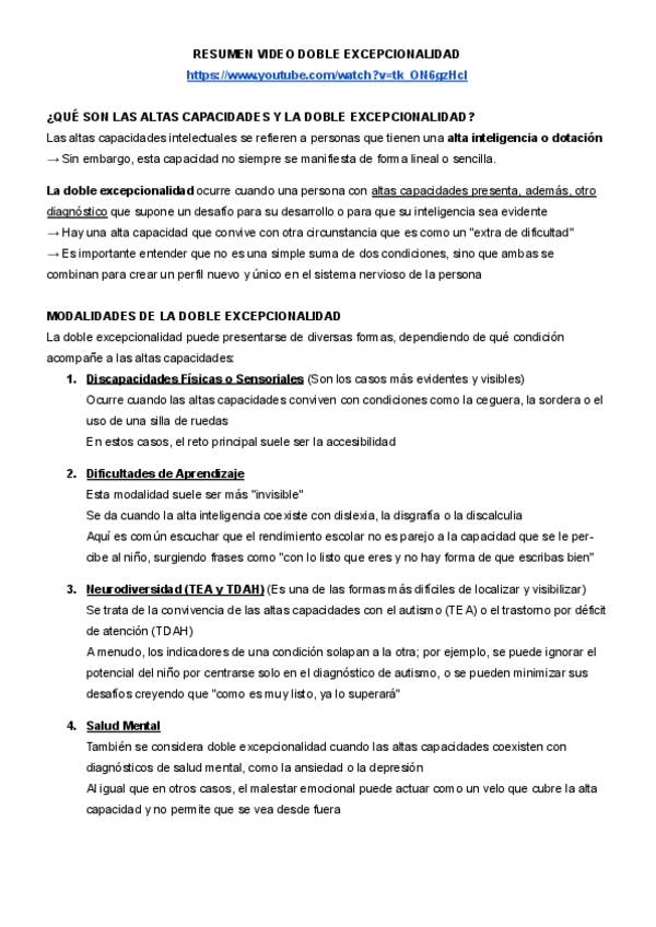 resumen completo de los puntos más importantes del video de la doble excepcionalidad