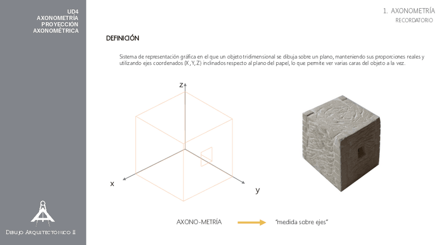 He publicado nuevos apuntes de 2º Dibujo Arquitectónico II: 25-26T4DARQ2AxonometriaProyeccion-Axonometrica.pdf