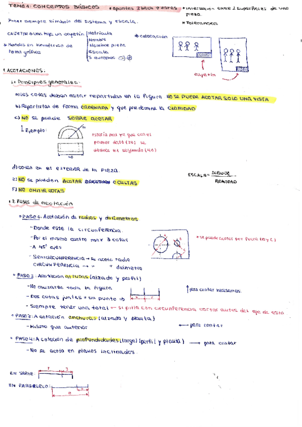Resumen de los apuntes de TODO Dibujo Industrial I, con ejemplos de acotación