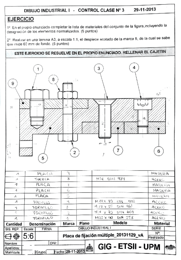 He publicado nuevos ejercicios de 1º Dibujo Industrial I: Placa-de-fijacion-multiple20131129vA.pdf