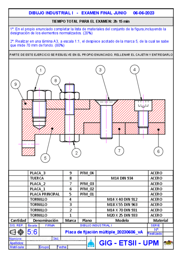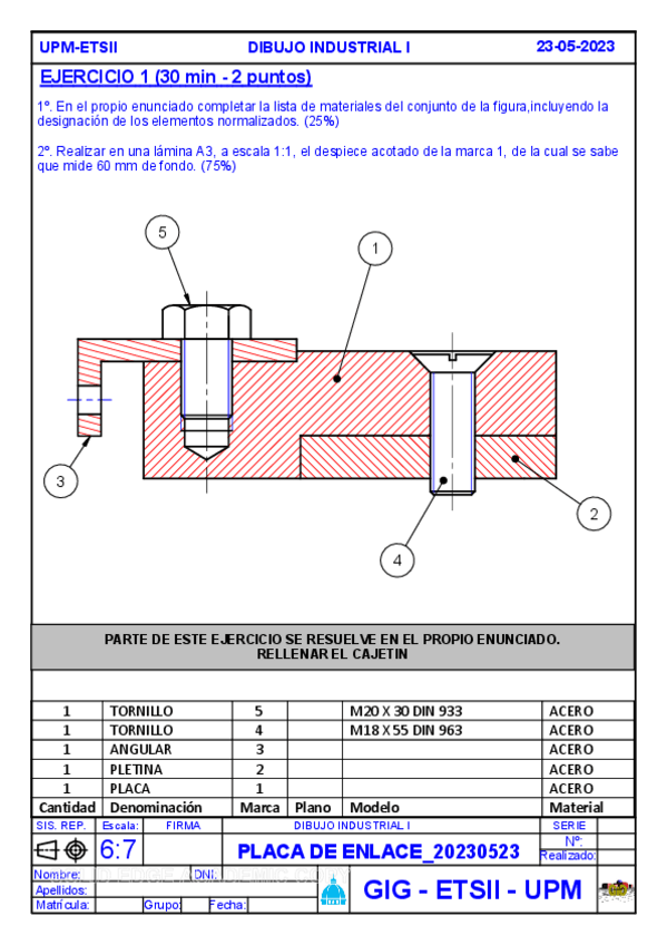 He publicado nuevos examenes de 1º Dibujo Industrial I: PEC107.03.2022.pdf