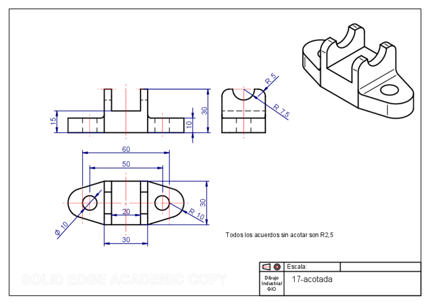 He publicado nuevos ejercicios de 1º Dibujo Industrial: Piezas y sólidos para acotación y resultados