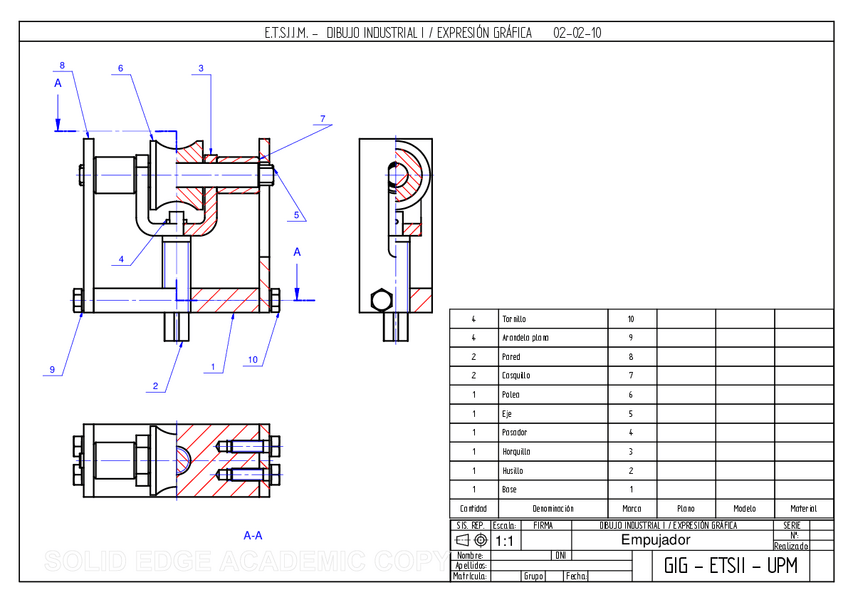 He publicado nuevos examenes de 1º Dibujo Industrial: Empujador-PEC3-2023.pdf