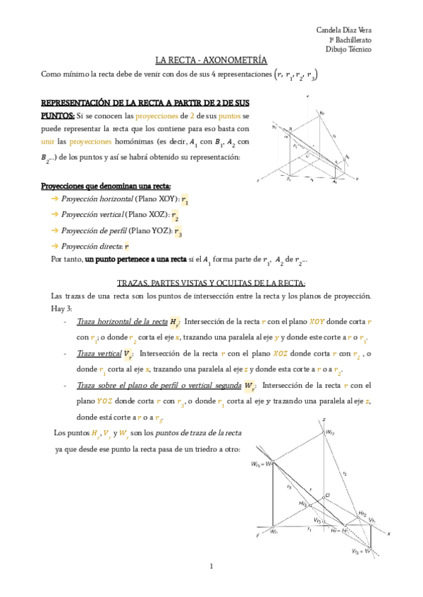 La Recta - Axonometría. Apuntes.
